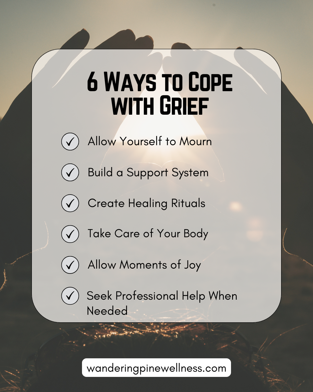 Therapeutic rituals can bring comfort, structure, and meaning to mourning. Try journaling your memories, lighting candles, creating a memory box, or honoring anniversaries. These practices can help keep loved ones’ memories alive while giving you a sense of stability.